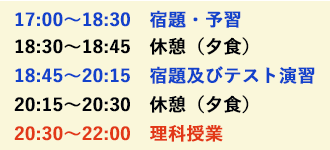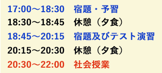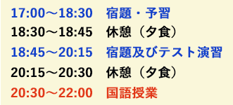 ※ 赤字部分が授業、青字部分は自習扱い(無料)となります。